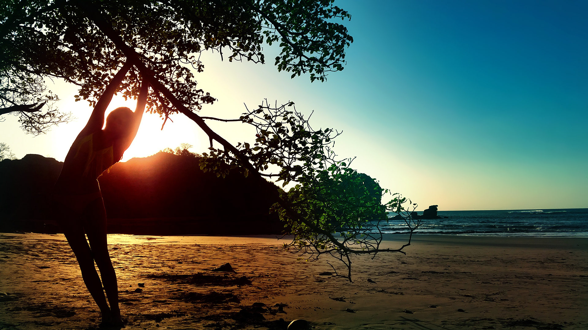 Pacific Ocean beach zen and sunset surfing in Nosara, Costa Rica.